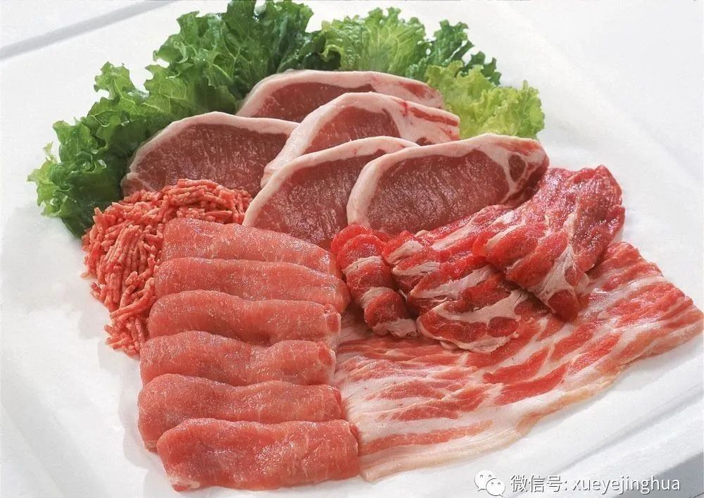紅肉:豬、牛、羊、驢、馬等畜肉被稱為紅肉,因為這些肉烹飪前是紅色的。