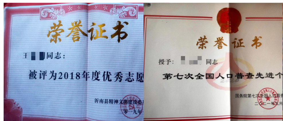 后來又響應(yīng)國家號召開展人口普查活動,在政府和鄉(xiāng)鎮(zhèn)的支持下,做出了不錯的成績。2021年獲得第七次全國人口普查先進個人的獎項,在農(nóng)村我算是把手機電腦學得比較順的,公益事業(yè)和志愿活動不僅提高我的個人能力,更重要的是我認為我的付出能對社會做出貢獻,能夠幫助到他人。周圍同事和朋友的支持與認可,甚至周邊的村民對我的認可,這讓我特別高興,也特別愿意繼續(xù)開展這個公益事業(yè)。